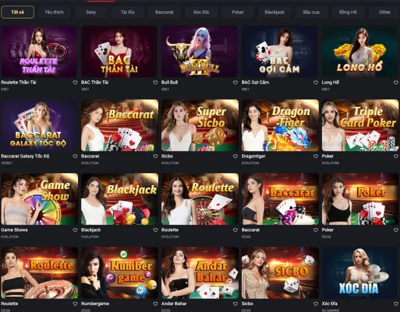 - Bước 3: Chọn mặt gửi vàng: Lựa chọn sảnh cược và tựa game yêu thích trong danh sách trò chơi đa dạng của Live Casino .